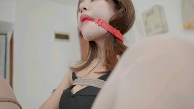 绑好之后男子对话美女:你就在这里好好享受吧...美女嘴里只能发出“呜呜呜”...的挣扎声绑好之后陌生男子再一次离开。