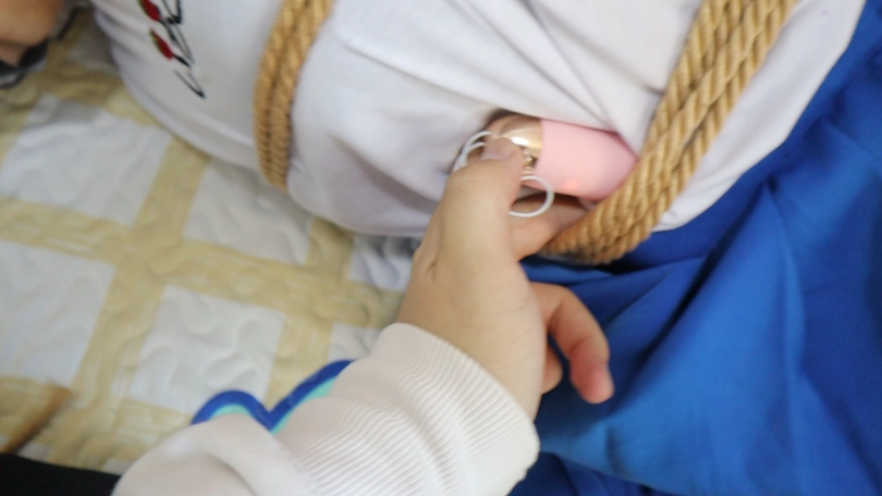 女孩也从睡梦中醒来了,开始疯狂的挣扎但是嘴巴里面塞着袜子,也喊不出来,只能发出呜呜呜呜的声音来以示反抗,很快就被绑好了,连着膝盖和脚腕都被狠狠的绑了起来,看着身边被紧紧捆起来的女孩子,开始把魔抓伸向这个女孩