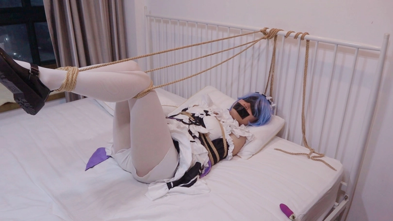 蕾姆酱,过来让主人绑,遵命,主人,接下来就见蕾姆酱被牢牢的绑在床上,穿着小皮鞋的白丝小脚被高高的吊起来,嘴巴被胶带封着,嘴里哼哼唧唧的,随着主人把蕾姆酱的鞋子慢慢脱下来,蕾姆酱嘴里含着布和胶带,呜呜呜的含糊不清的说道:主人请温柔一点,