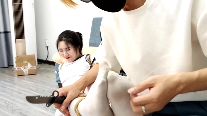 › 【逍遥】《白丝笨蛋美女的奇怪自缚01》笨蛋美女意外被绳子缠缚结果越挣扎捆绑的越紧 超有趣剧情~