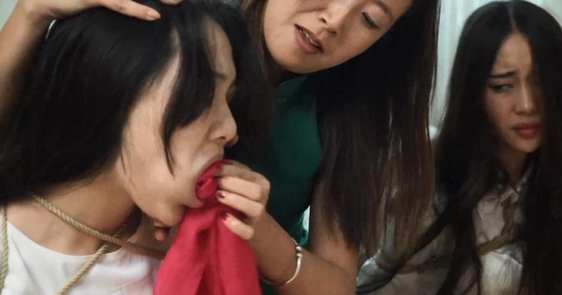 【逍遥】两位肉丝美女被驷马捆绑,花式极限堵嘴!丝袜口球甚至卫生巾!