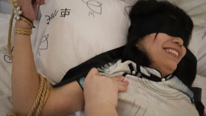 肉丝旗袍姐姐双手被绑在床沿上 双脚被高高的吊在房梁上 看预览就知道挣玩的多high啦