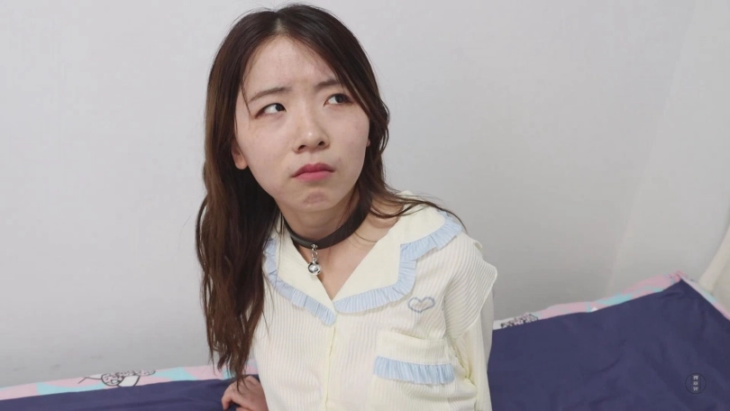 在小清点头表示配合后,神秘人将小清嘴里的白色中筒袜缓缓取出来,并调侃了一句。