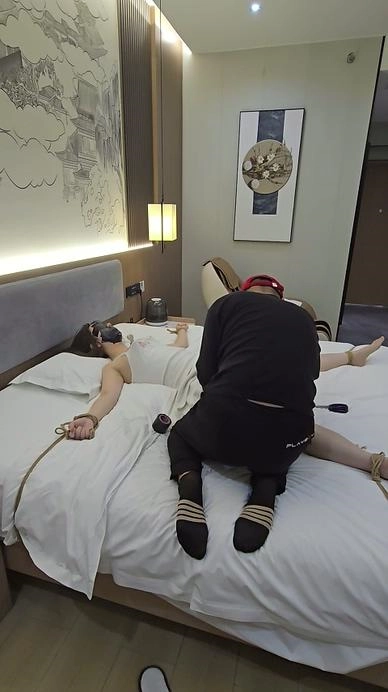 › 【小黑】嘴里塞着袜子,胶带堵嘴蒙眼,床上大字缚,一直呜呜说话,听不懂说的啥,玩具放在最敏感地方,放置反复折磨,素人真实反应。