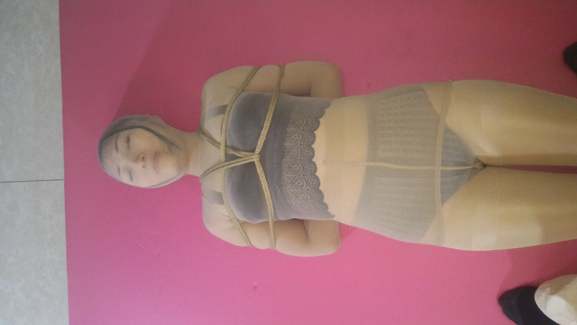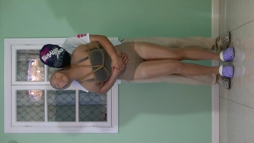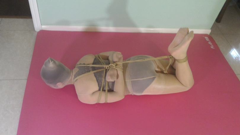 妹子被丝袜全包后,捆绑 放置 挣扎。近距离脸部特写拍摄。