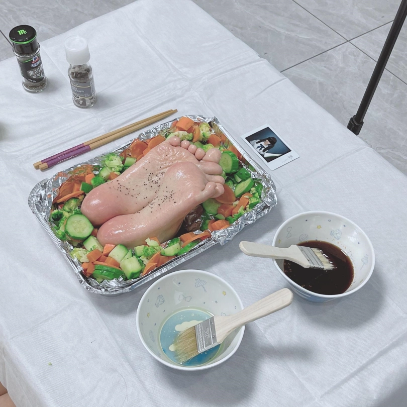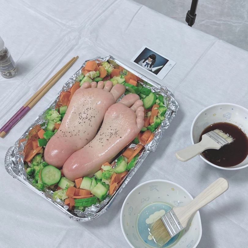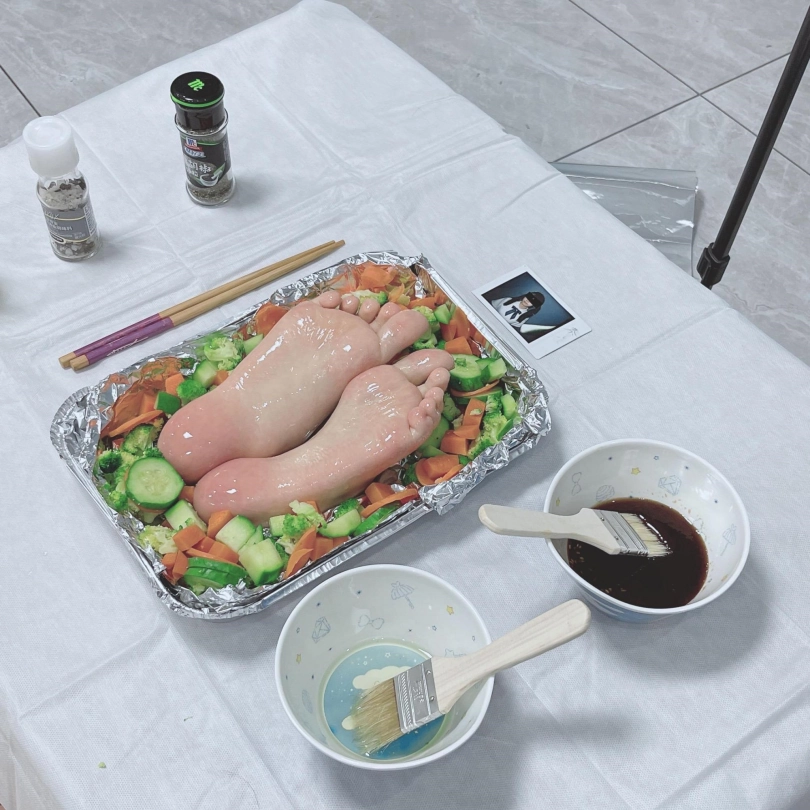 为了保证最棒的用餐体验,本店采用最新的保险技术,顾客您看,这双足底是鲜活的哦(戳),无论你做什么 ,足底的主人都会100%感受到呢!
