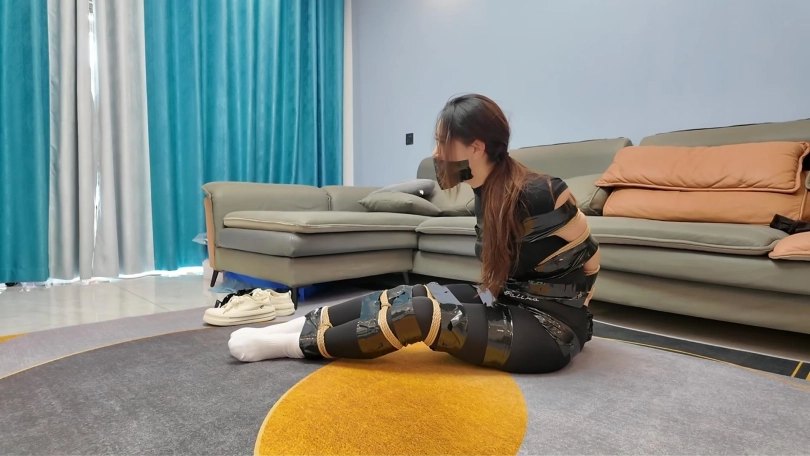瑜伽美女茜茜在家玩手机,被入室歹徒强制捆绑,胶带堵嘴,翻完财务不算,又脱下茜想穿的耐克白袜,用茜茜自己穿的白袜硬塞到西茜嘴里,把茜茜嘴巴撑的鼓鼓的,不放心,又用胶带缠好多圈,手臂直臂捆绑,然后外面有缠上胶带,腿也是,密密麻麻,任由茜茜在地上拼命挣扎,最后还不罢休,竟然脱下自己脚上穿的白袜,捏着茜茜的鼻子,强行塞到茜茜嘴里,胶带封好,带上眼罩,扬长而去,留下茜茜在地上苦苦挣扎