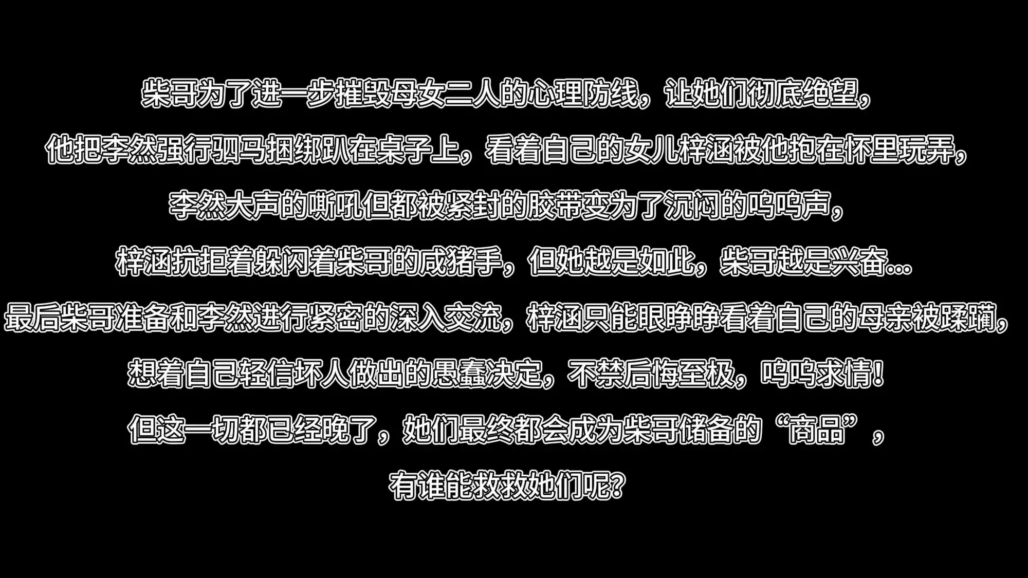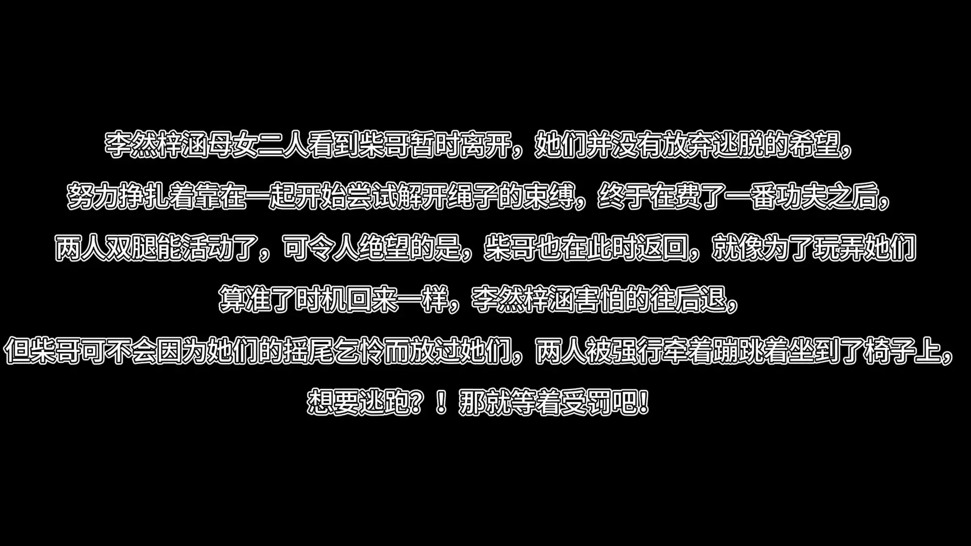 两人双腿能活动了,可令人绝望的是,柴哥也在此时返回,就像为了玩弄她们