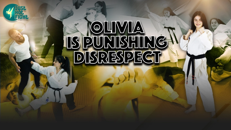 Olivia was practicing karate, a man came to her who disrespected karate and she decided to punish him for it with powerful punches.