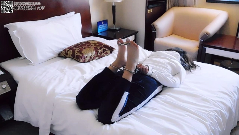 妹子来到酒吧喝酒,然而酒吧老板是个人贩子,偷偷给她的酒里下了药。妹子过了一会,就感觉不对,然后就晕过去了。这时老板觉得新弄的药还挺管用,有妹子可以玩了。老板把她驷马锁在床上,等她醒来。妹子醒来,发现自己被锁住了,十分惊慌。老板出现了,开始调戏妹子,脱下鞋袜,锁上脚趾、脚心、拇指。妹子更加惊慌,不断求饶。老板来解开镣铐,脱下了她的衣服,只剩内衣,检查身体无误后,再全部锁上,更是一顿调戏,然后离开。留下妹子挣扎,等待明天的拐卖。