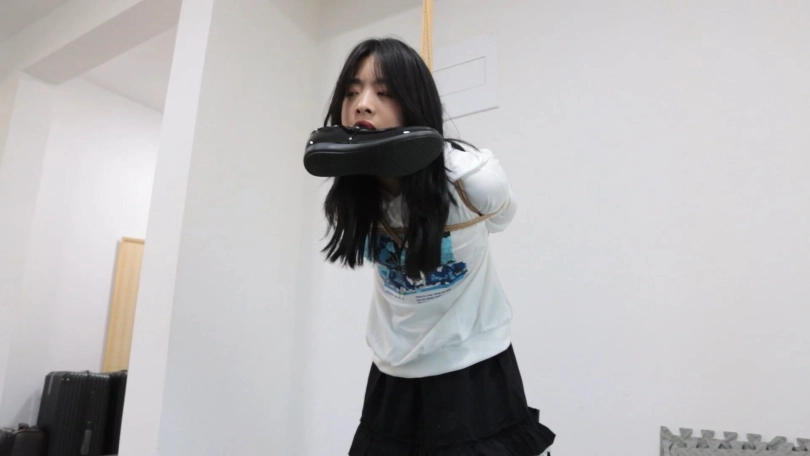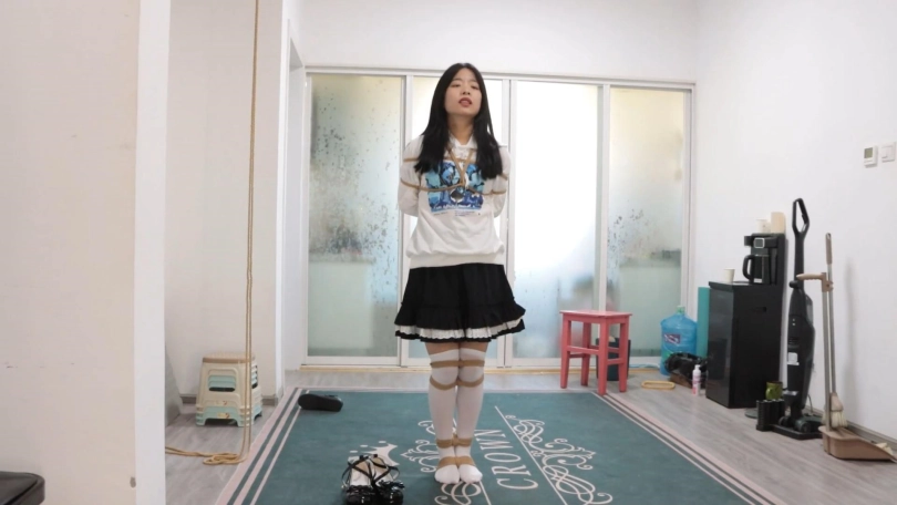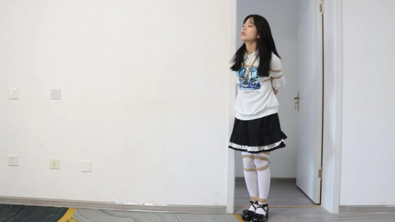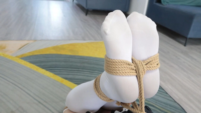 ——绮娜:耶!脚脚也被捆绑起来啦! 妹妹去大门处拿一下鞋子,哥哥等等哦。