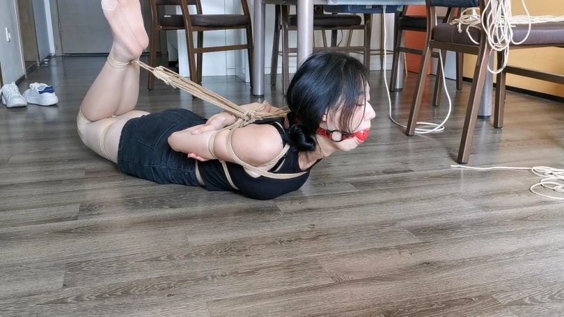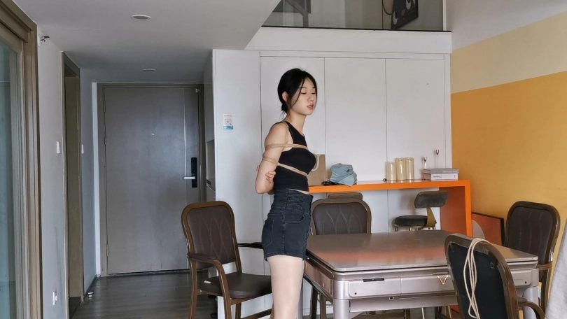 这次开盲盒真开出极品了。小梦颜值身材都非常不错,性格也很乖巧,老规矩驷马紧缚放置了一个多小时,堵着大口球的小梦流了一地的口水,看着非常诱人。