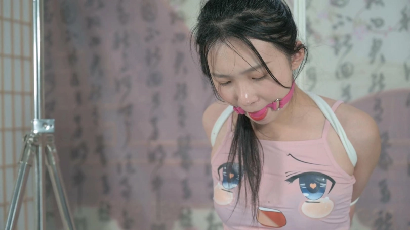› 【撒琅制造】高挑妹子蹲姿和坐姿直臂缚--丝袜、高跟、口球、爱抚、TK、电击