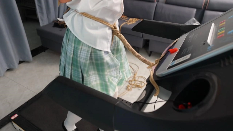 艰难站起身,帮欢欢关闭了跑步机,然后二女互相想办法解开绳索,但是文文对于欢欢出卖自己的行为很是愤怒。解开绳子之后拒绝解救欢欢,反而是加固了一下束缚,然后扬长而去。只剩下可怜的欢欢留在跑步机上继续挣扎。