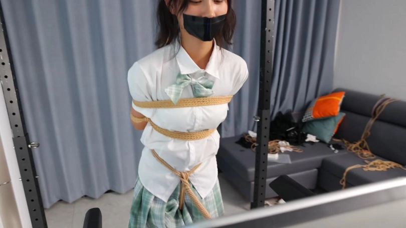 欢欢被坏蛋入室劫持,日式吊起,又用股绳连接着跑步机只能无奈的在跑步机上面跟着走。结果劫匪在屋子里什么都没有找到。气愤之下让欢欢想办法忽悠来她的闺蜜文文。文文一无所知的来到欢欢这里,结果立马中了劫匪的招数,被驷马拘束在地上,劫匪拿了文文的财务扬长而去。留下欢欢和文文在屋子里想办法解脱。文文想尽办法终于解开了连接脚踝和手腕的绳子。