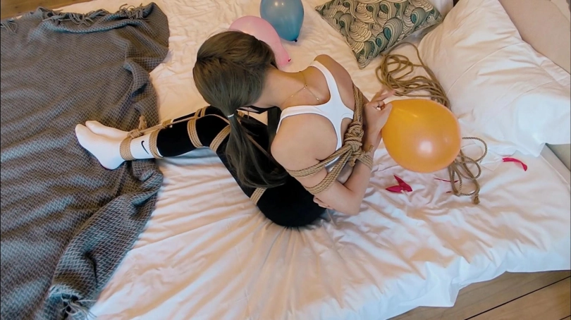 一个“简单“的小游戏,挑战者需要在各种不同类型的束缚方式下,尝试用身体的各个部位去弄破散落在身边的气球。以下为本期挑战的五种束缚方式: