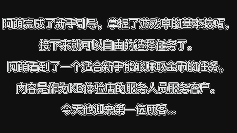 阿萌看到了一个适合新手能够赚取金币的任务,内容是作为KB体验店的服务人员服务客户。