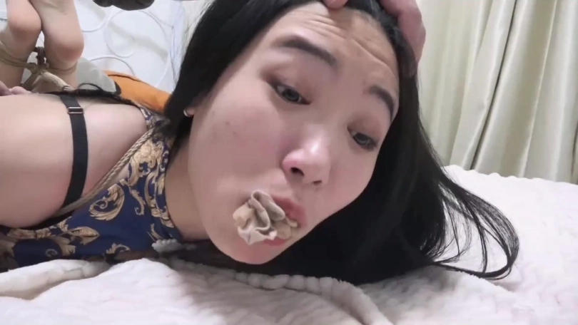 看童瑶不老实,歹人使劲挠童瑶脚心,刺激她呜呜闷哼不断扭动身体挣扎,挠了一阵以后,歹人准备跑路,临走前用眼罩蒙住童瑶的眼睛,洗劫童瑶的财物离去,留下童瑶在黑暗中扭动身体呜呜呜闷哼挣扎,但是怎么挣扎也无济于事,最终只能在黑暗中低下头闷哼着,等待家人回来给她解开。