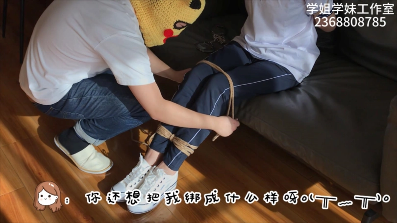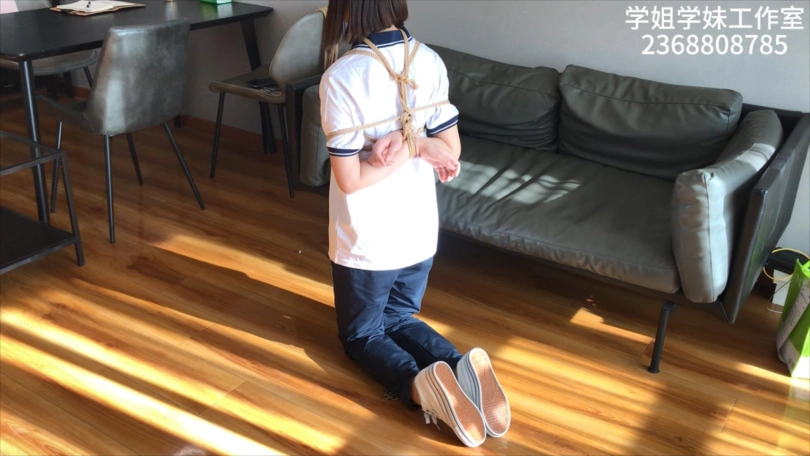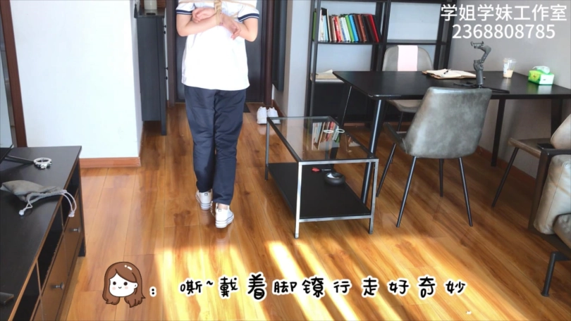 › 【学姐学妹】高考前的周末——校服白色帆布鞋五花带镣行走下跪绑腿
