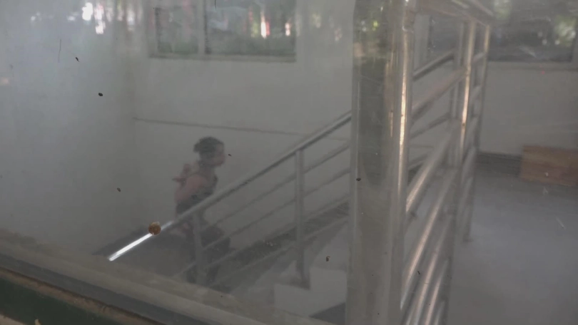 【逍遥】《逃脱失败之后》上集,一位被捆绑堵嘴的少女,艰难的走在楼梯间中。