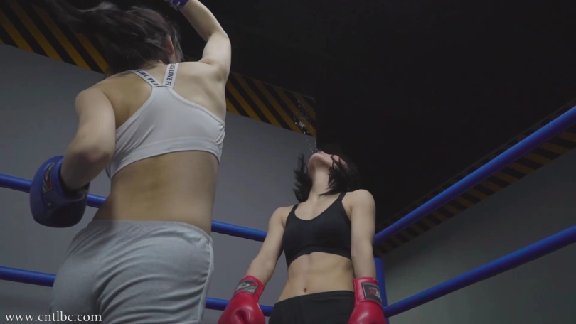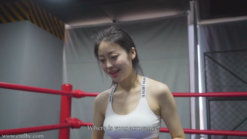 The new boxing girl was going to have a boxing match with Bing. She looks very confident. She even began to fantasize about beating Bing. In her fantasy, Bing was knocked down by her many times and spat. She began to smile triumphantly...