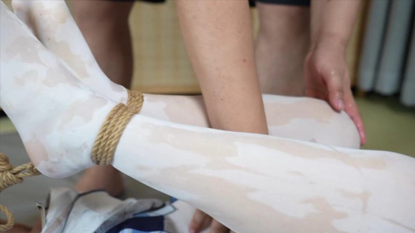 2.双脚举过头顶的海老缚,固定在竹竿上,td放置