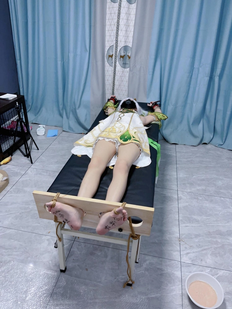 姿势:痒刑床+足枷(一定要固定脚趾)