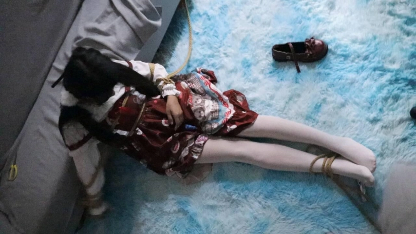 【荷约少女】女孩子不要轻易求饶,否则只会让人更加兴奋呢 暗黑风红萝li白丝少女的惩罚虐待,黑点状布条蒙嘴,发不出声音的呜咽声,绑在沙发上洛丽塔少女不停的被言语羞辱,电笔的滴滴声一直环绕在小姑娘的周围,恐惧无助单双手被绑在沙发的两个桌角动弹不得