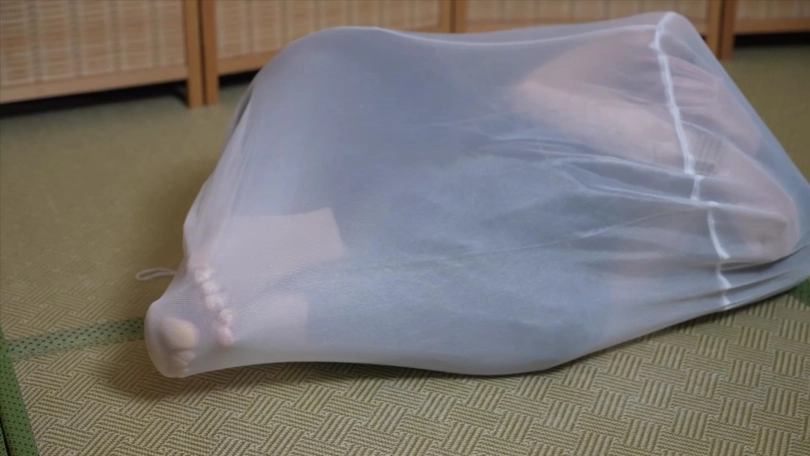 双手捆绑后装到洗衣袋里,套两层以后15分钟挣脱时间