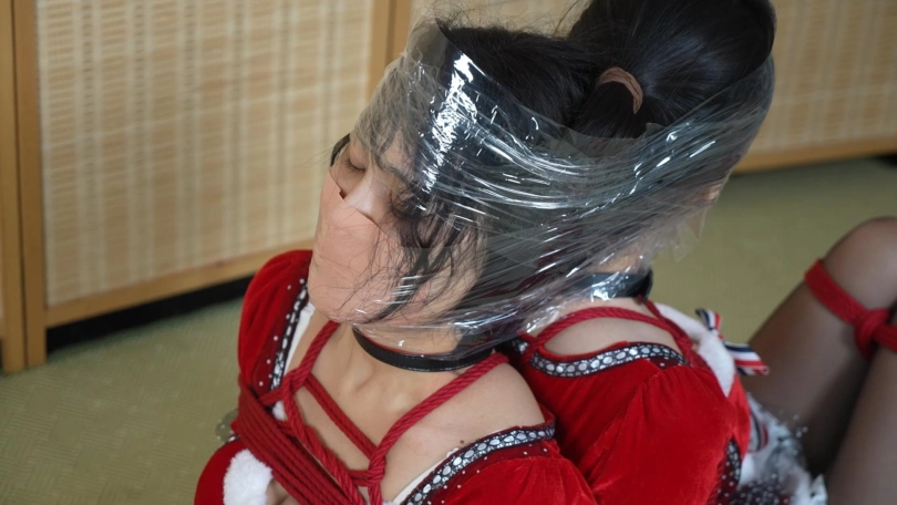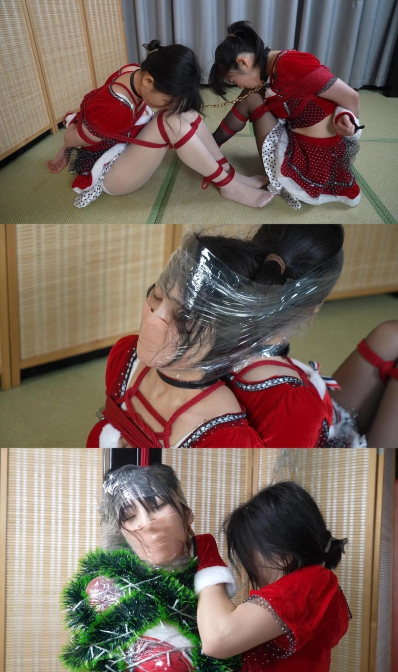 穿着圣诞服装的小0和嗷嗷本想一起共度佳节,却不知为什么分别被紧缚捆绑起来,嘴巴和鼻子都被胶布封住,十分难受。被绑着的她们试图协作脱缚,换来的却只是紧密的连缚,还被戴上项圈用链子栓在一起。一番挣扎后,她们精疲力尽,晕了过去。