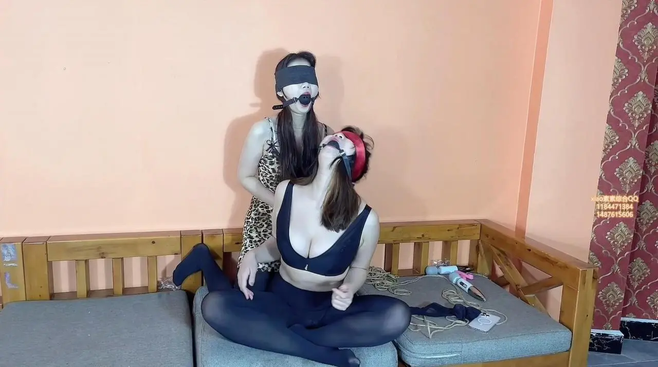 双女比赛 蒙眼穿丝袜 带5cm最大号口球。