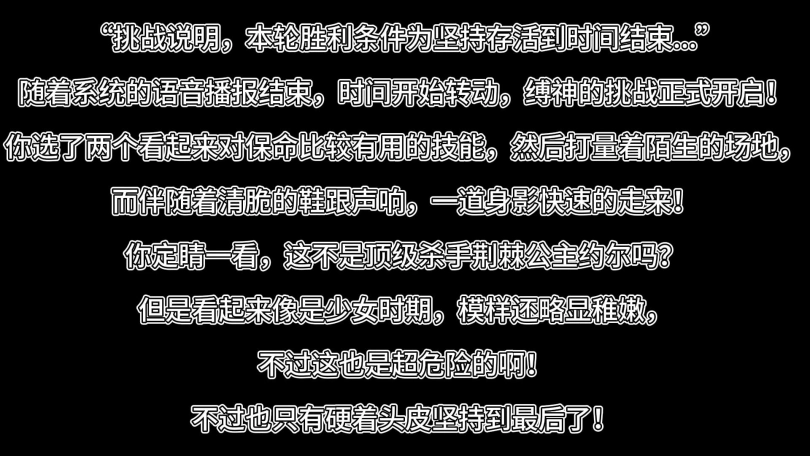 你选了两个看起来对保命比较有用的技能,然后打量着陌生的场地,