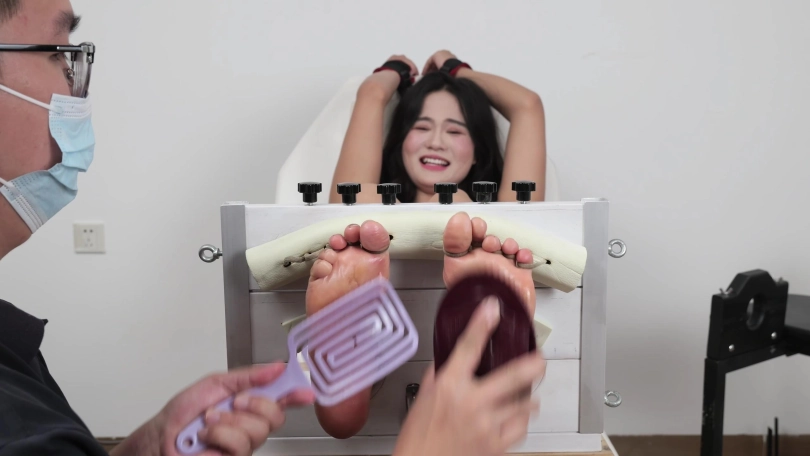 妹子非常怕痒,一碰就受不了。一直笑一直叫,高能不断,脚很嫩,软软的。