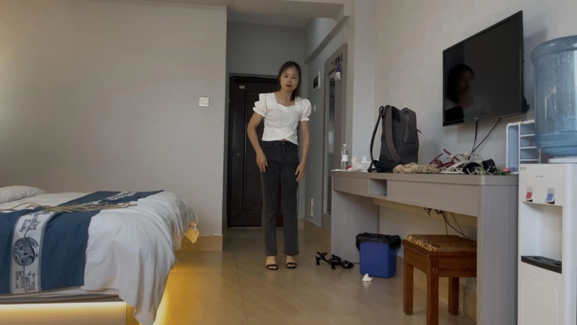 即兴拍了一次文文五花紧缚加脚铐,刚开始想让她挣扎自己解开,没想到绑得有点紧她也解不开,后面就戴上口球和脚铐,让她自己在房间里边走边挣扎,高跟鞋配镣铐行走不便又很痛,那是一个难受啊,口球也嘞到最紧哈喇子边走边流,直接就拉丝了,看着还是有点兴奋的,哈哈哈。