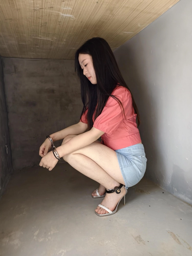 【忘忧社】新模特美女记者林嘉来名叫忘忧社的监狱风格体验馆体验,当女犯的一天,带手铐脚铐,脚镣,以及犯人不听话会遇到的各种刑罚,后高手吊起来,关笼子,上老虎凳等,度过了难忘的一天。