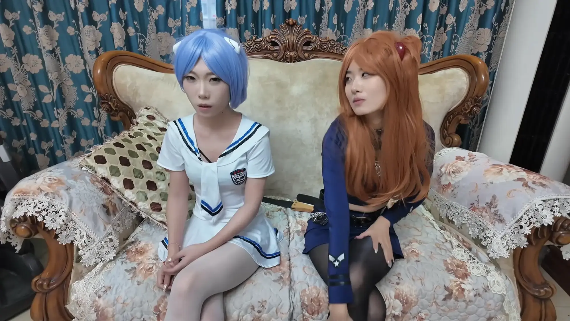 白色水手服“绫波丽”和蓝色搜查官服“明日香”的换装play!
