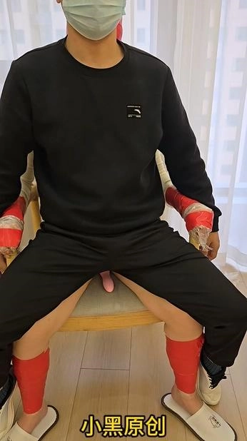 › 【小黑】胶带椅子拘束逃脱挑战,胶带全包头,保鲜膜再缠上,她疯狂挣扎,我依然不给她解开,最后惩罚是打开门给她放门口。