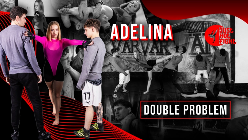Adelina, a sporty girl, was doing stretching exercises in the gym. Two jerks suddenly barged in and started bothering her. So Adelina switched from a calm warm-up to a beating to teach the scoundrels a lesson.