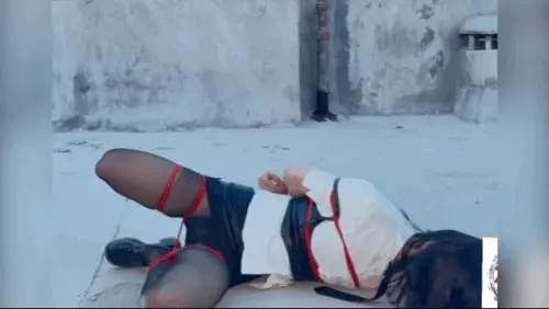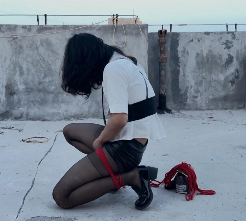 这次用的是两条十米的绳子,一条用来做一个简单的折腿缚,一条绑了一个日式自缚,因为天快黑了,甚至能在视频里看到日光逐渐变暗的过程,以至于后来闪光灯都自己启动了。这次绑好腿后,膝盖和双腿以及被小皮鞋包裹的脚就一直特别难受特别疼,绑好以后就想着赶快解开,结果还是费了好大力气才勉强解开。