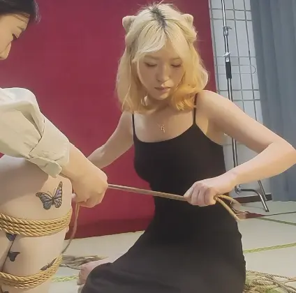 紫悦在秦韵绳屋体验过后,一直非常忙碌,压抑的生活让她又想起了在绳屋体验的快乐,好奇的她突然也对缚手的活感兴趣了,闲暇时间把秦韵绳屋之前的教学视频全部翻出来复习了一遍,这天她休年假,又来到了秦韵绳屋,袅袅成了工具人