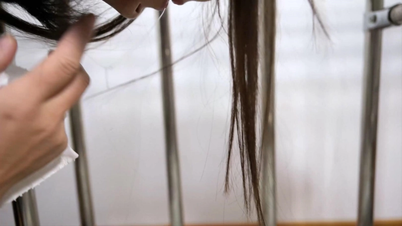 言妍现已成为第二代口水王,一会就一大片那种,先是出其不意把垫子搞湿,换上了单子又是一大片,真是一大惊喜。这次言妍被锁在笼子里,进了笼子也不能轻松,得用绳子和杆子固定住才有意思,看来是不太舒服,刚固定好,那久违的呻吟声就激发出来了,接下来就是女王沐小雨出场,粉丝戏称言妍和沐小雨为黄金搭档,沐小雨手法老练狠辣,喜欢玩弄完人家脚脚再把高跟鞋给人家再穿回去,这次还给人家穿反了,搞得言妍事后一直吐槽,而且还直喊口渴,流了这么多能不口渴吗?