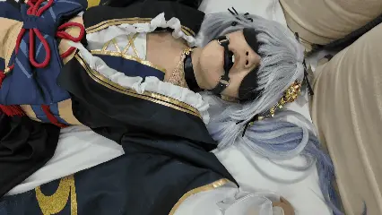 神里绫华四肢呈大字型被束缚在床上,所有的挣扎都徒劳无果,被用震动棒刺激,tk,带着眼罩和口塞的她被黑暗所笼罩,神之眼也无法使用,只能苦苦挣扎任人宰割,期间被揉胸掐脖td刺激,更是用电击器不断加大电力,使她几近崩溃,最终在多重折磨下,凌华不堪受苦晕了过去