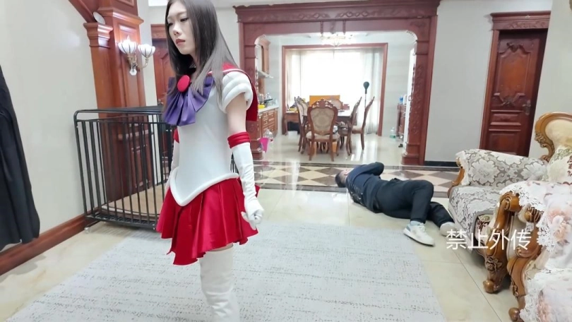 一天,女主因为大雨虚弱,避雨时候碰见员工。员工看见女主虚弱的样子联想起了美少女战士。恶从胆边生,开始折磨女主。女主挣脱开,变身为美少女战士,打得员工屁滚尿流逃走,女战士追击。被员工用水枪击倒,不停的呲水女战士虚弱哀嚎。员工折磨女战士击腹掰腿踩踏脱靴等。折磨过程中丝袜也被撕烂,女战士陷入绝境。员工拽起女战士扔进浴室,喷头呲女战士。女战士能量核心进水,倒下。最后,女主向其他女战士求救,昏死过去。