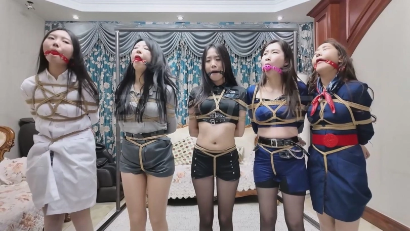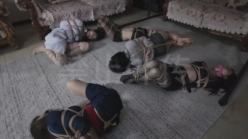 两个女人贩正在折磨女探员和大小姐,幕后老板进来了,本来是想邀功的二人却被老板迷晕,五位美女都被绑了起来,被老板卖到国外。