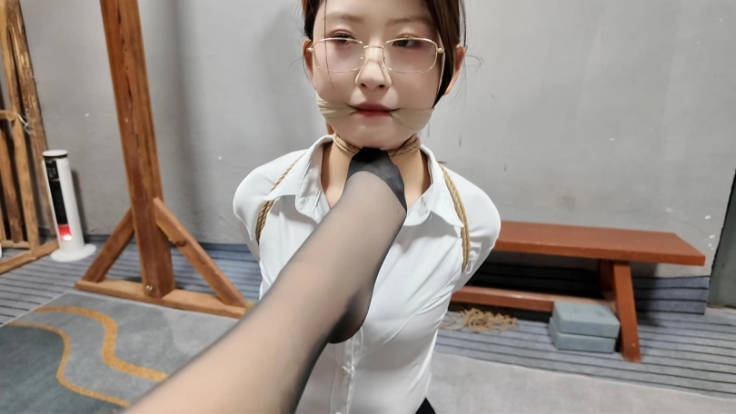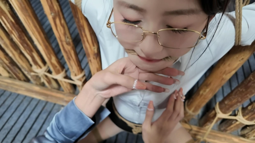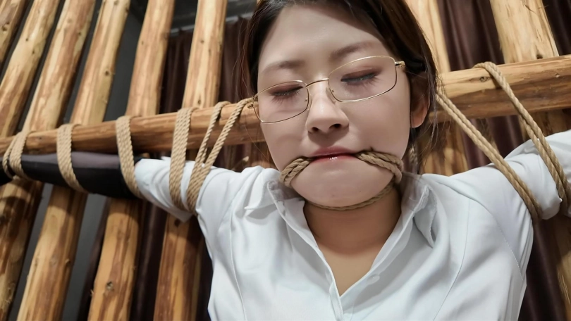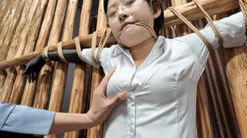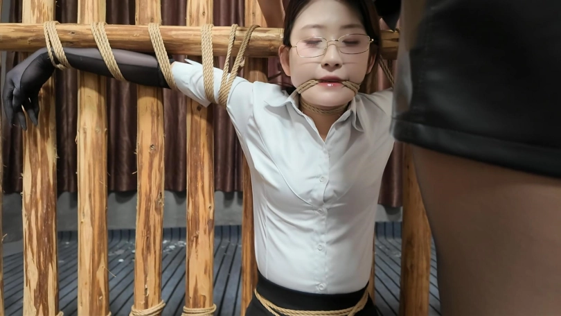 闺蜜之恋,佳佳变身女s调J晓琴,绑到木牢边上,m腿,上身双臂伸开,脚趾绑上,还要固定棒棒,这个姿势非常难受,再加上棒棒刺激,很快晓琴就受不了