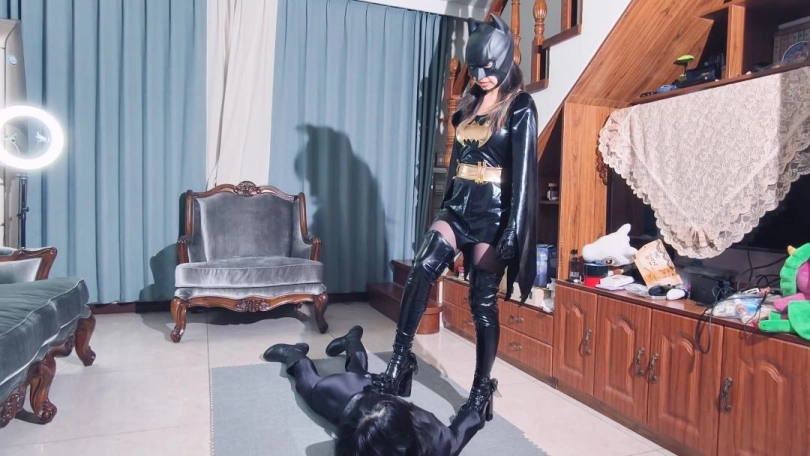 蝙蝠女撤退中途毒性猛烈发作昏厥倒地。女杀手追击而至继续折磨蝙蝠女。脱靴,脱皮袜,皮裙战斗服也被脱掉。蝙蝠女被不停的揉摸屁股,被女杀手要求闻女杀手的脚。蝙蝠女就此堕落。从此以后每天在女杀手面前脱掉战斗服,享受着女杀手的玩弄。女英雄题材(蝙蝠女,女奥,神奇女侠,女超人等)持续更新,下周更新云雀的纯洁女侠 曼妮主演。