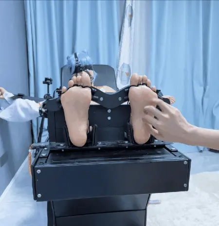 2.用鼻钩固定鼻子到刑床后方强制抬头,因为小鼻子被拉扯,哪怕在被挠脚心的时候也连摇头都做不到!!