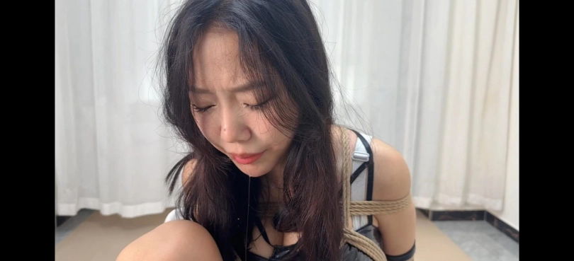 驴驴身穿性感皮裙加红底高跟捆绑放置口球和yj口塞堵嘴流口水,还有透明和银色胶带封嘴,口水很多挣扎也很不错