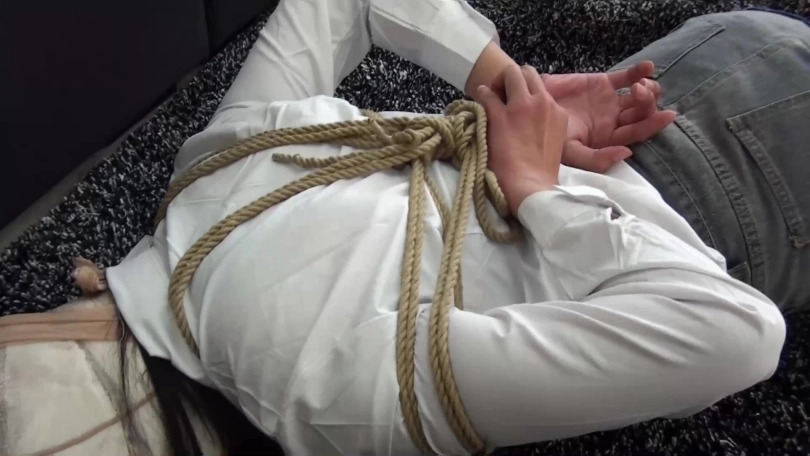笑笑是某公司女白领,一天下班后回家遭遇一个戴骷髅头面具劫匪劫持,劫匪抢走笑笑财物后,用白色纱布蒙住笑笑的眼睛,将笑笑上身五花大绑。