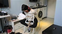 【JS】【欣妍】长靴女孩椅子捆绑丝袜塞嘴套头透明胶带缠绕棒棒刺激